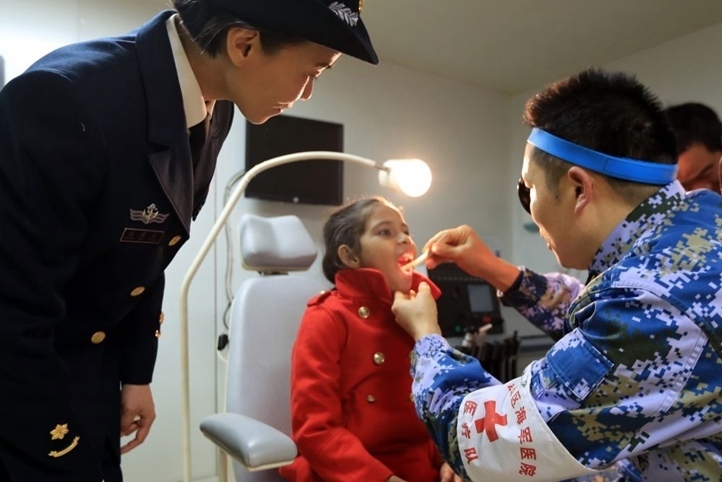 2019年12月9日,在“和平方舟”號(hào)醫(yī)院船上,口腔科醫(yī)生給沁做檢查。新華社發(fā)(吳煒權(quán) 攝)