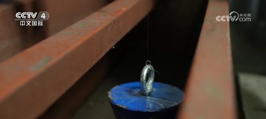中國(guó)船舶外高橋造船大型郵輪項(xiàng)目技術(shù)副經(jīng)理 李嘉寧:這是一個(gè)擺錘,它很重的。這個(gè)是一個(gè)油槽,里面放滿(mǎn)油,上面布置鋼尺,會(huì)精確地讀數(shù)。當(dāng)船發(fā)生傾斜之后,(通過(guò))擺錘移動(dòng)多少的距離就可以知道這個(gè)船橫傾的狀態(tài)。郵輪傾斜試驗(yàn)獲得船舶的重量和重心這兩個(gè)數(shù)據(jù),是大型郵輪最重要的兩個(gè)數(shù)據(jù)指標(biāo),因?yàn)樗鼪Q定了這條船將來(lái)到海上航行的穩(wěn)性安全。