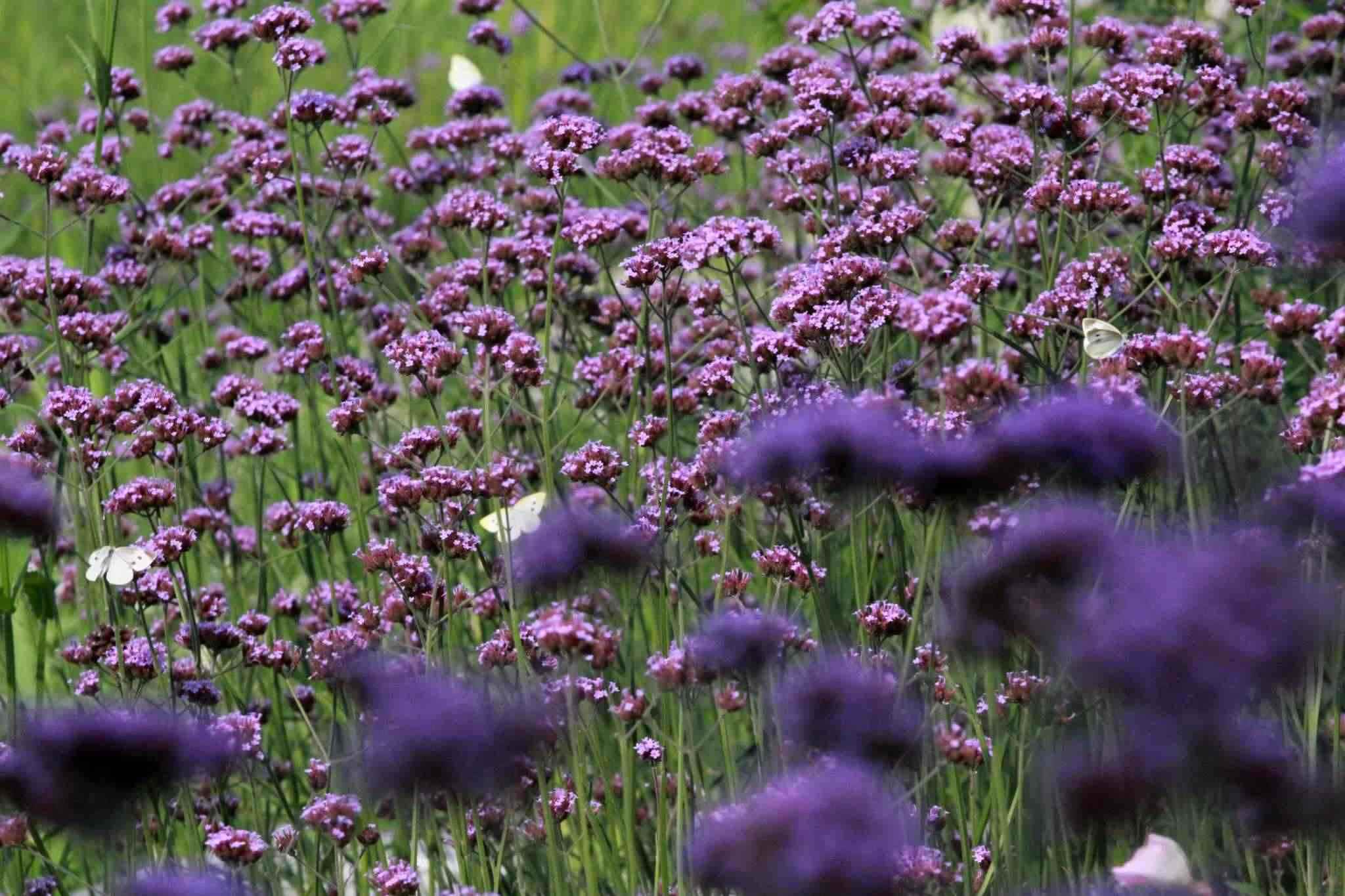 2023年6月2日,江蘇南通,芒種將至,一公園內(nèi)的馬鞭草進(jìn)入盛花期,不時(shí)引來(lái)蝴蝶飛舞其間。視覺(jué)中國(guó)