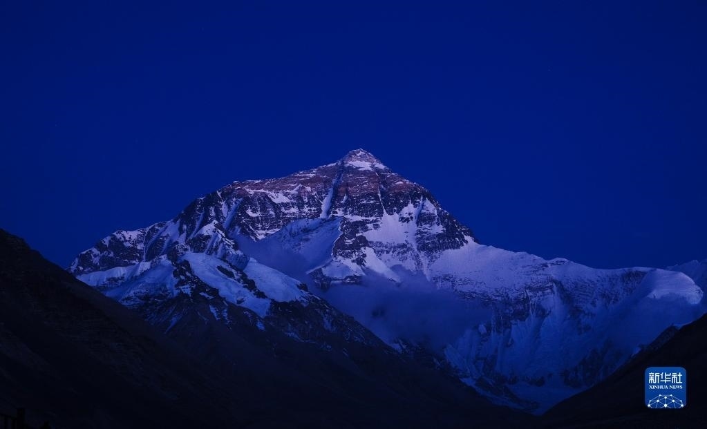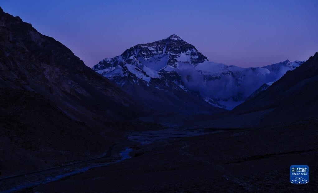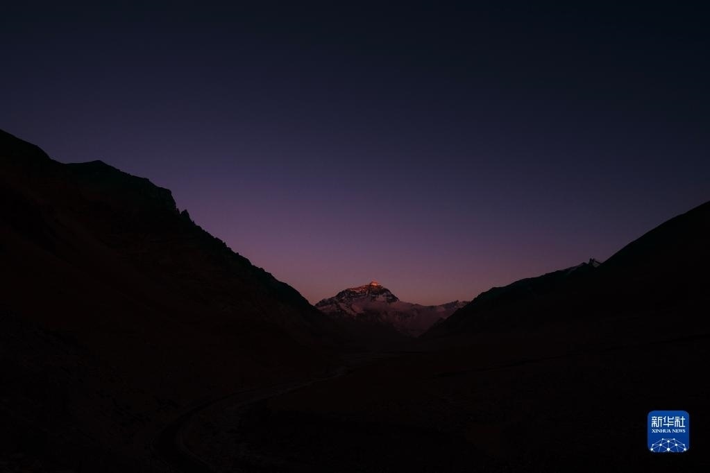 6月4日拍攝的太陽完全落山之后的珠峰。   新華社記者 費(fèi)茂華 攝