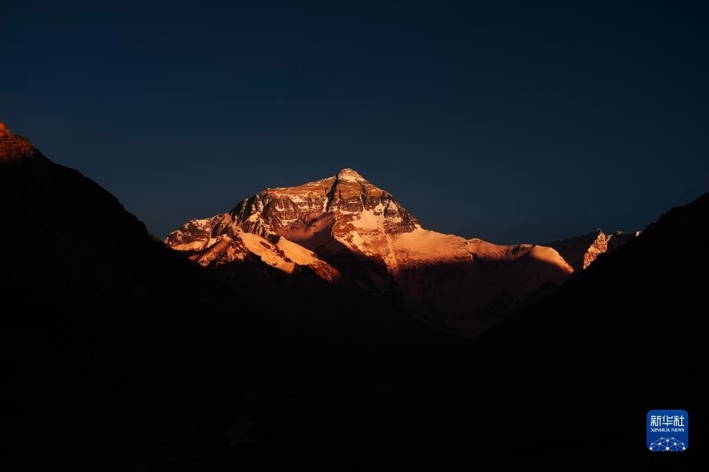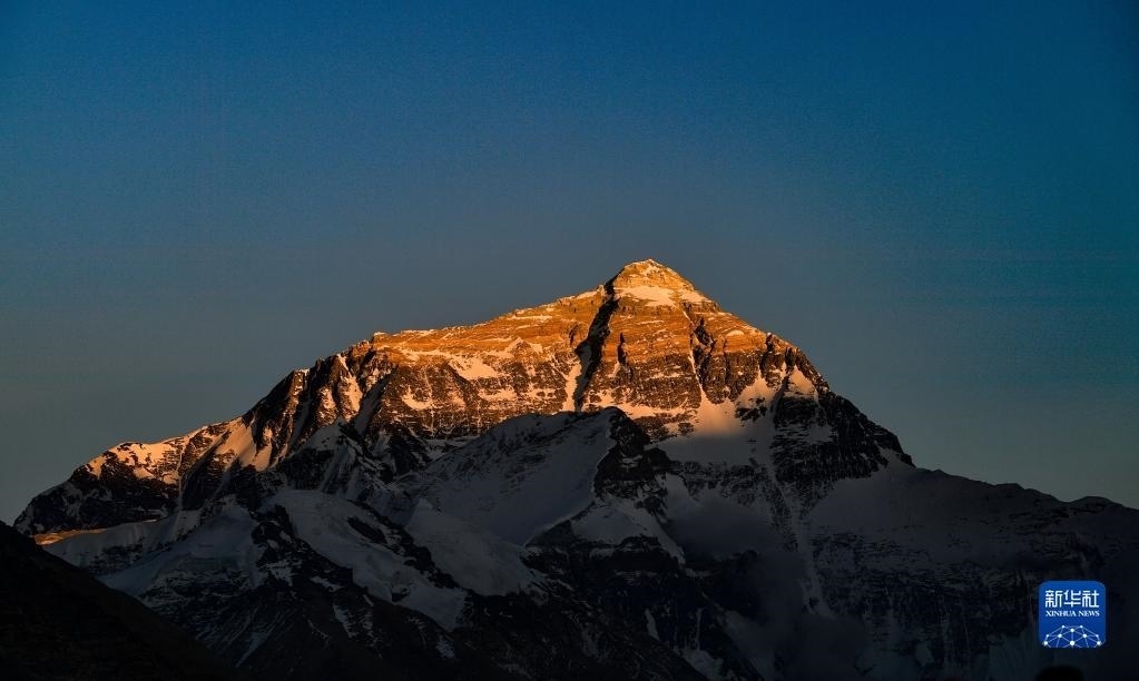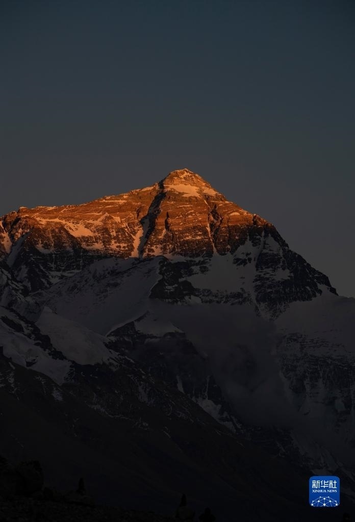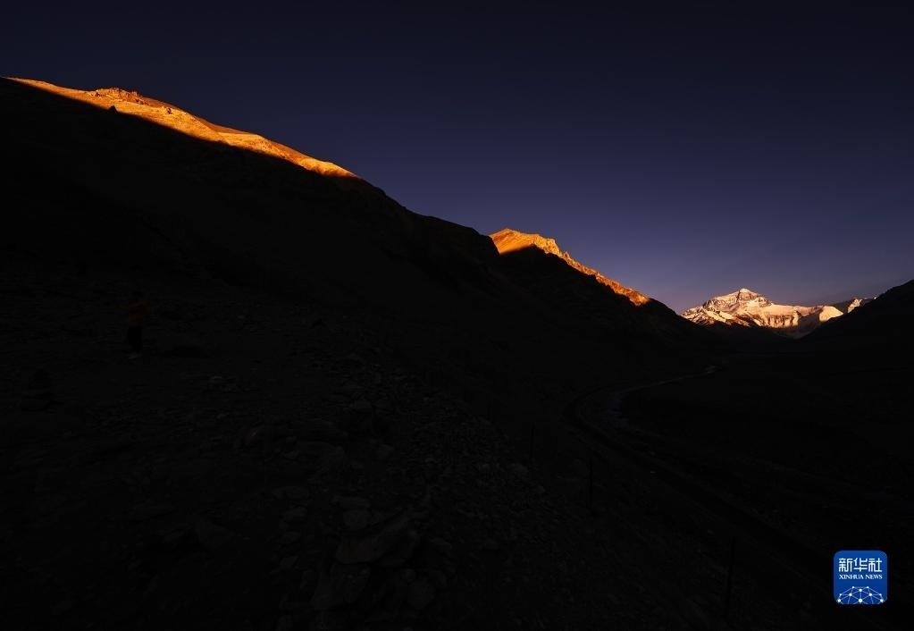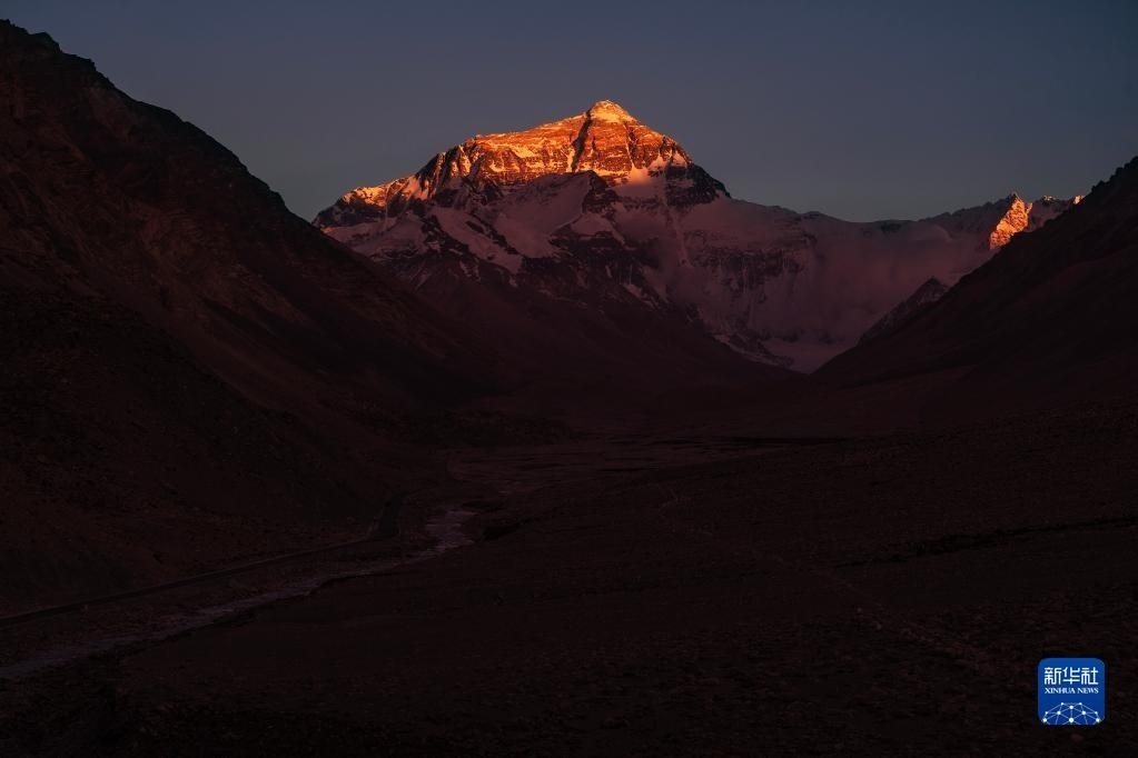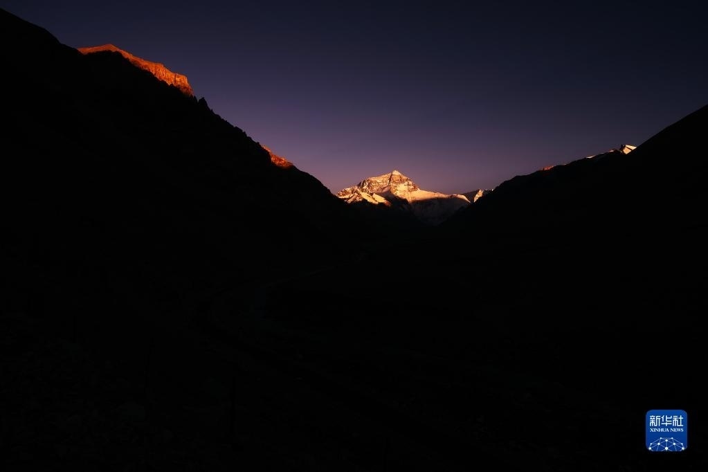 巍峨的珠穆朗瑪峰屹立于青藏高原,珠峰地區(qū)氣候復(fù)雜,景色瞬息萬變。“國道之行 從雪山奔向大?!眻?bào)道組在落日時分來到珠穆朗瑪峰腳下,記錄下世界之巔的“日照金山”壯美場景。   新華社記者 費(fèi)茂華 攝