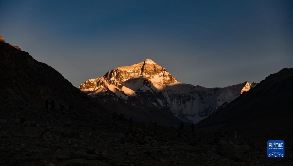 6月4日,最后一抹陽光即將從珠峰頂上消逝。   新華社記者 費(fèi)茂華 攝