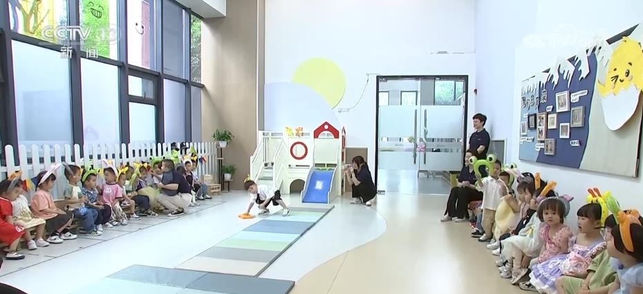 托育中心按照每個(gè)班2名幼師、1名保育員的配置對(duì)幼兒進(jìn)行照護(hù)。每個(gè)月還會(huì)設(shè)計(jì)主題游戲活動(dòng),促進(jìn)孩子的身體發(fā)展、情感自理能力以及社交能力等。