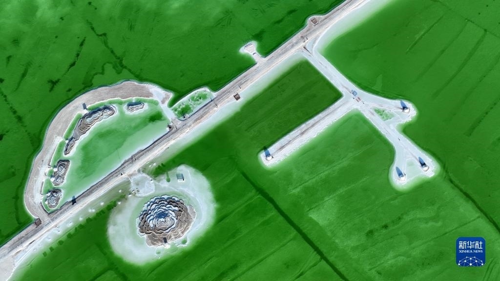 這是6月8日拍攝的察爾汗鹽湖景色(無人機照片)。