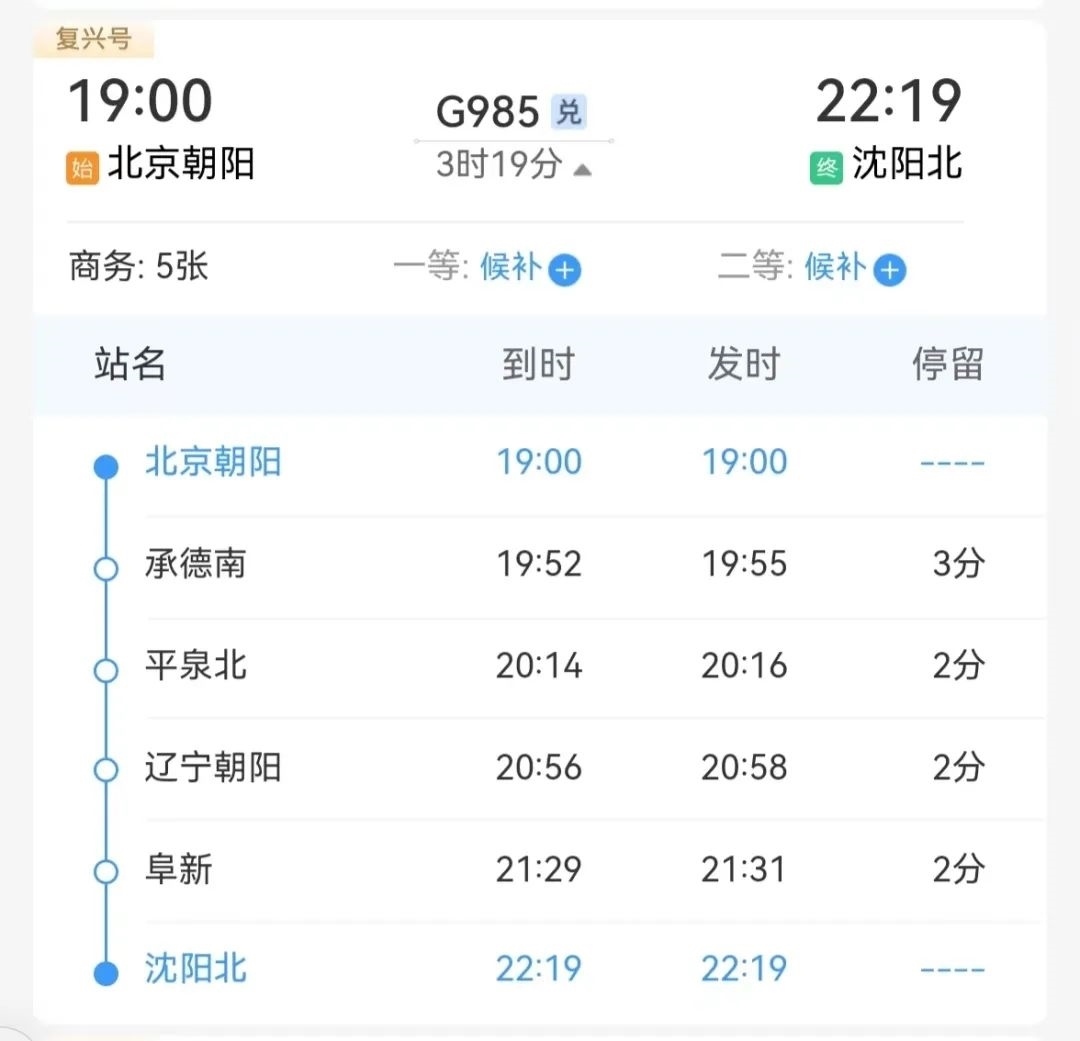 這趟車每天19時從北京朝陽站出發(fā)
