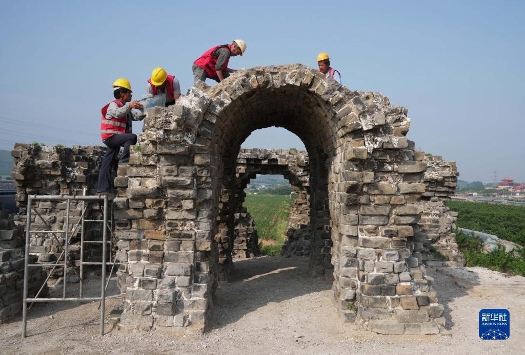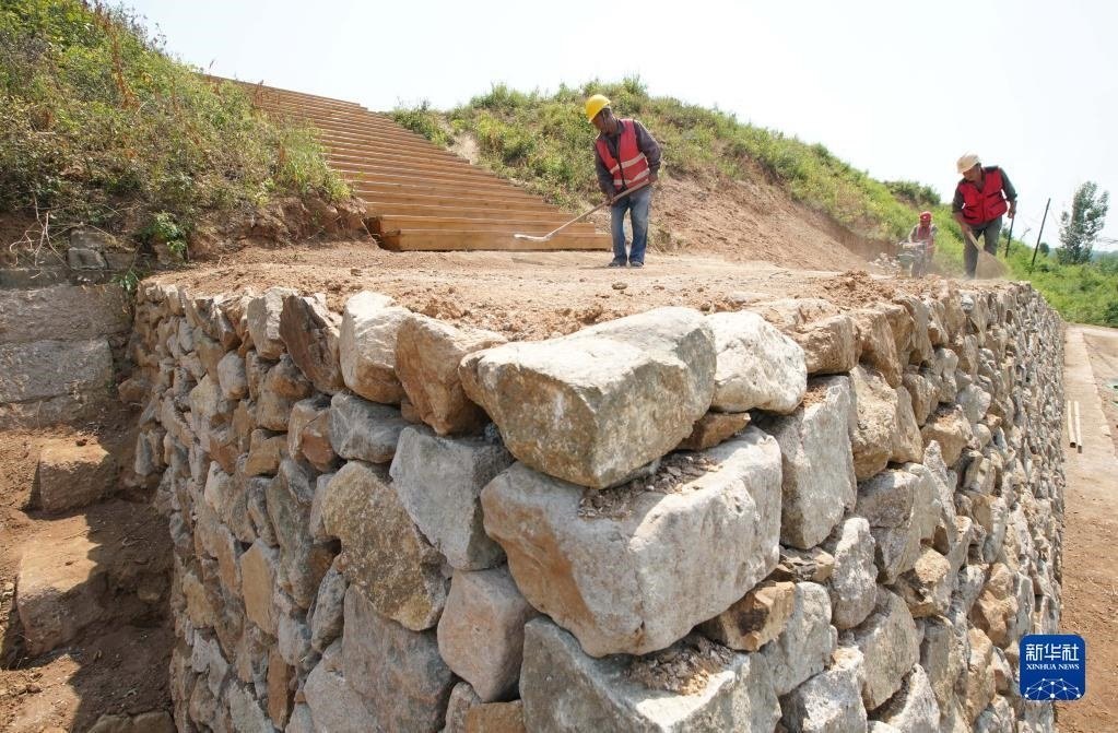 近日,河北省秦皇島市山海關(guān)區(qū)山海關(guān)長城保護(hù)展示工程——腰鋪9號敵臺和51號墻臺馬道保護(hù)修繕工程施工穩(wěn)步推進(jìn)。據(jù)介紹,腰鋪9號敵臺和51號墻臺馬道是山海關(guān)長城軍事防御體系中重要的附屬設(shè)施。修繕工程預(yù)計(jì)7月底完工。新華社記者 楊世堯 攝