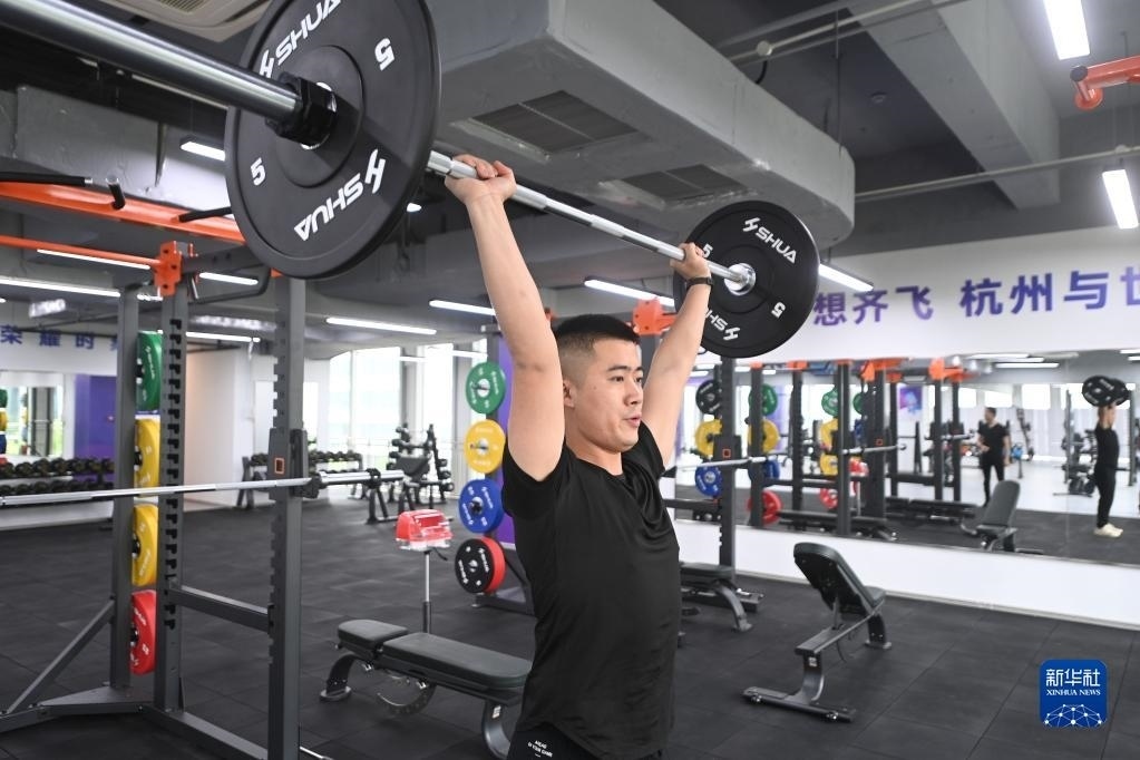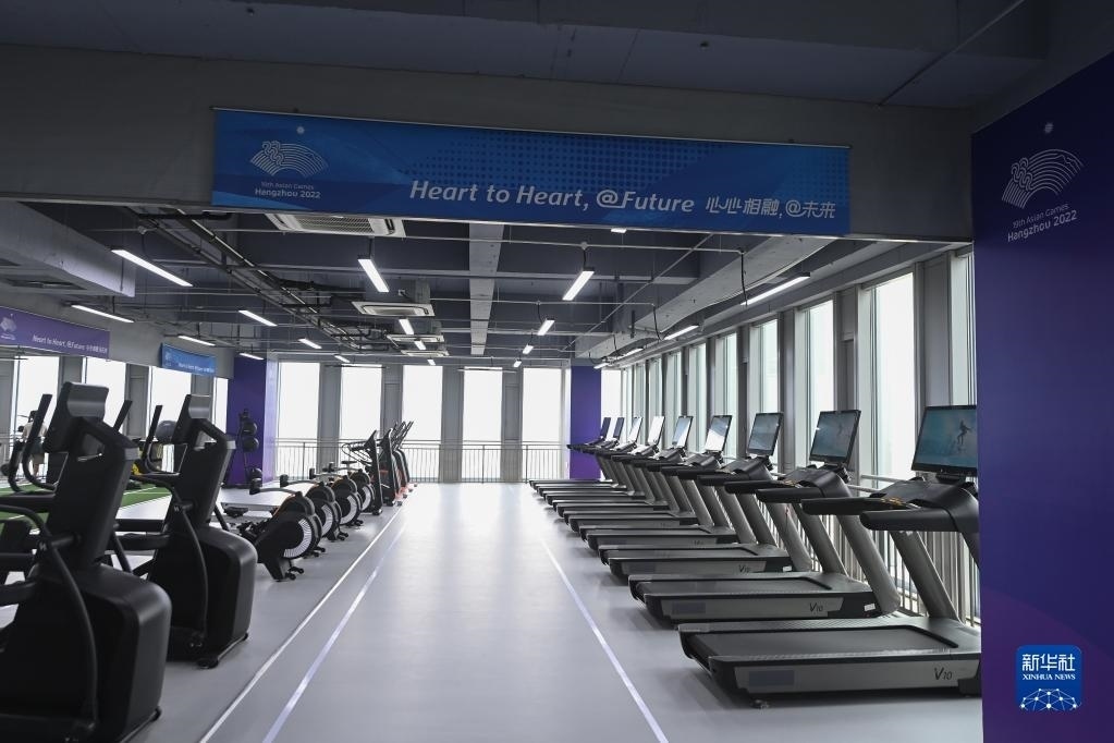 這是6月16日拍攝的杭州亞運村健身中心內(nèi)景。健身中心設(shè)置有氧運動區(qū)、爆發(fā)力訓(xùn)練區(qū)、拉伸恢復(fù)區(qū)、綜合器械區(qū)及功能性訓(xùn)練區(qū),可容納約350名運動員同時使用。
