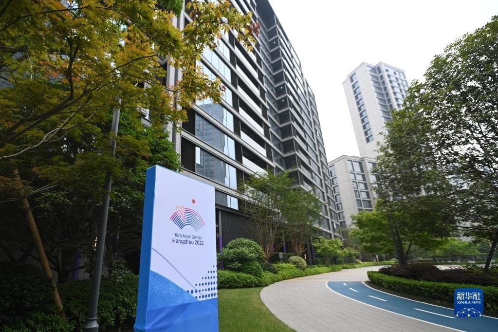 這是6月16日拍攝的杭州亞運村運動員村。運動員村每幢樓高10至42層不等,共22種戶型。