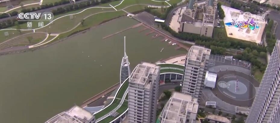 總臺(tái)記者 梁燁:但是要說(shuō)溫州什么運(yùn)動(dòng)最熱鬧,那就肯定是龍舟了。我們現(xiàn)在看到的是溫州龍舟運(yùn)動(dòng)中心,這里是全亞洲最高標(biāo)準(zhǔn)的龍舟賽場(chǎng)。我們從空中俯瞰,整棟樓看起來(lái)非常狹長(zhǎng),并且高低起伏猶如山脈,就好像是一條龍靜臥在水面之上,因此,這幢樓也被稱為“龍樓”。比賽時(shí),這里主要作賽事保障用途。緊挨著龍樓的這座,從正面看像是船槳,從側(cè)面看像龍舟的建筑就是舟塔,這也是比賽的終點(diǎn)塔。比賽期間,裁判員們就會(huì)在這里觀看比賽,在這里計(jì)時(shí)計(jì)分。此時(shí)此刻,我們看到水面上正在進(jìn)行演練,他們所劃行的這1200米的賽道到時(shí)候就是龍舟的比賽場(chǎng)地。