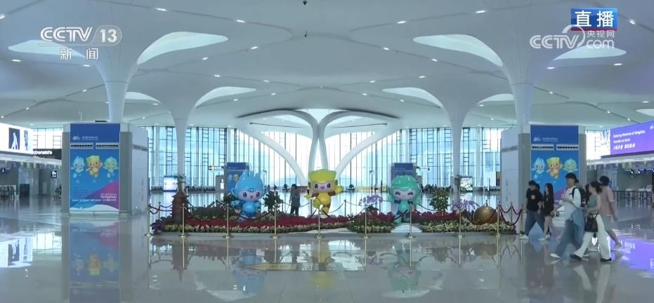 總臺(tái)記者 寧婉婷:杭州蕭山國(guó)際機(jī)場(chǎng)T4航站樓是本屆亞運(yùn)會(huì)人員官方出入境口岸。整個(gè)T4航站樓里布滿了亞運(yùn)元素,從亞運(yùn)會(huì)的標(biāo)志到吉祥物,到處都充滿了濃濃的亞運(yùn)氛圍,也吸引了很多過(guò)往旅客打卡拍照。