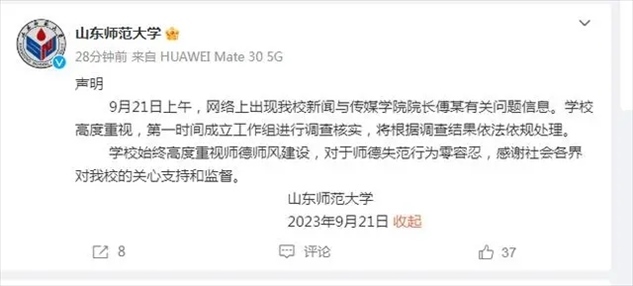·青年女教師舉報(bào)遭博導(dǎo)侵害,山東師范大學(xué)回應(yīng):正在調(diào)查核實(shí)。