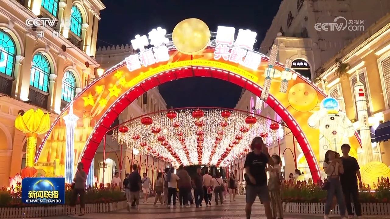 香港大街小巷張燈結(jié)彩,喜迎中秋、國慶,彩燈、走馬燈、各色花燈裝點著城市夜色。在澳門,以“中秋喜相逢 國慶共歡騰”為主題的燈飾點亮大街小巷,吸引大批市民和游客打卡留念。