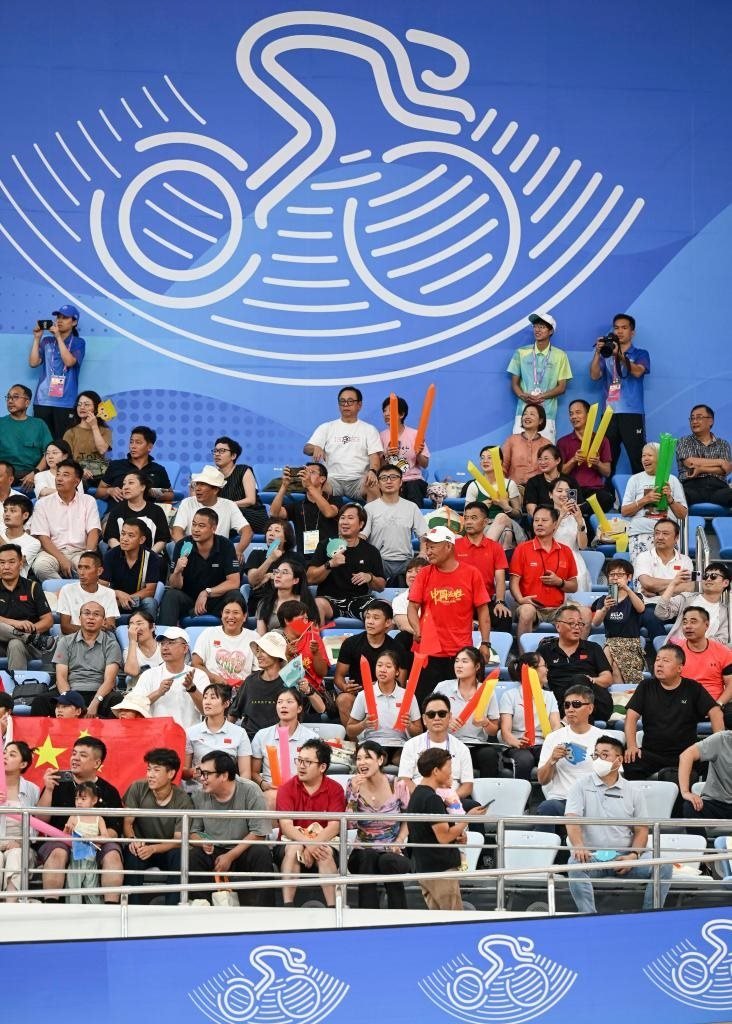 9月26日,觀眾在杭州亞運(yùn)會場地自行車男子團(tuán)體競速賽場邊觀賽。新華社記者 胡虎虎 攝