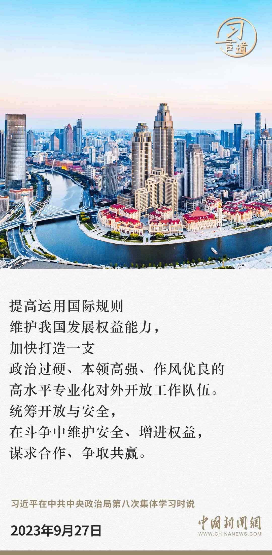 中共中央政治局9月27日下午就世界貿(mào)易組織規(guī)則與世界貿(mào)易組織改革進(jìn)行第八次集體學(xué)習(xí)。中共中央總書記習(xí)近平在主持學(xué)習(xí)時(shí)強(qiáng)調(diào)——