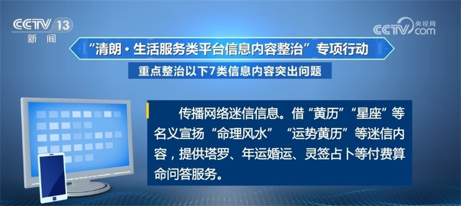 此次專項行動覆蓋團購評價、婚戀交友、搜索引擎、影視點評、天氣日歷、旅游出行、網絡購物、地圖導航、本地生活、運動健康、實用工具等各類生活服務平臺,重點整治以下7類信息內容突出問題?! ?/p>