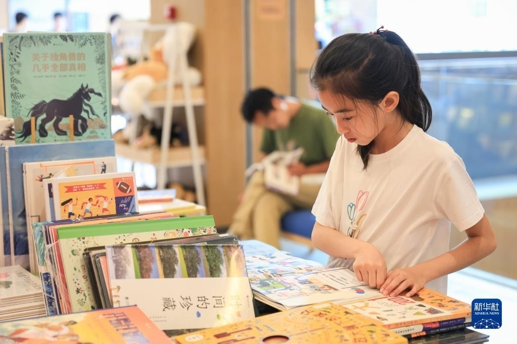 7月8日,小讀者在南京一家書(shū)店內(nèi)閱讀。