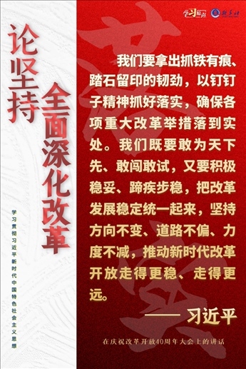 實現(xiàn)新時代新征程的目標任務(wù),要把全面深化改革作為推進中國式現(xiàn)代化的根本動力,作為穩(wěn)大局、應(yīng)變局、開新局的重要抓手,把準方向、守正創(chuàng)新、真抓實干,在新征程上譜寫改革開放新篇章。