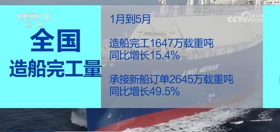今年1—5月,全國(guó)造船完工1647萬(wàn)載重噸,同比增長(zhǎng)15.4%;承接新船訂單2645萬(wàn)載重噸,同比增長(zhǎng)49.5%。5月底,手持船舶訂單11799萬(wàn)載重噸,同比增長(zhǎng)15.5%。綠色船舶理念正逐步貫穿船舶的設(shè)計(jì)建造全過(guò)程,成為中國(guó)造船業(yè)一張響亮的“名片”。