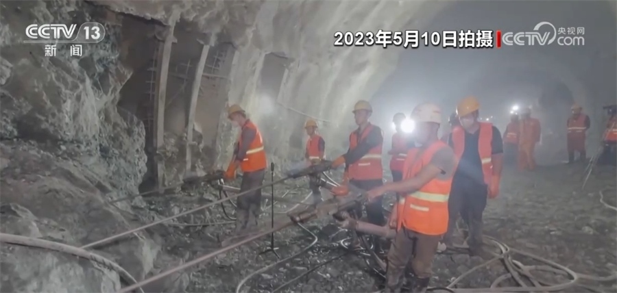 總臺記者 劉文杰:現(xiàn)在是5月10日,工人們正在進(jìn)行的作業(yè)是對隧道的支護(hù)進(jìn)行拆換,整個(gè)拆換作業(yè)現(xiàn)在只剩最后的30米,可以說,整個(gè)隧道的建設(shè)也進(jìn)入了沖刺階段。