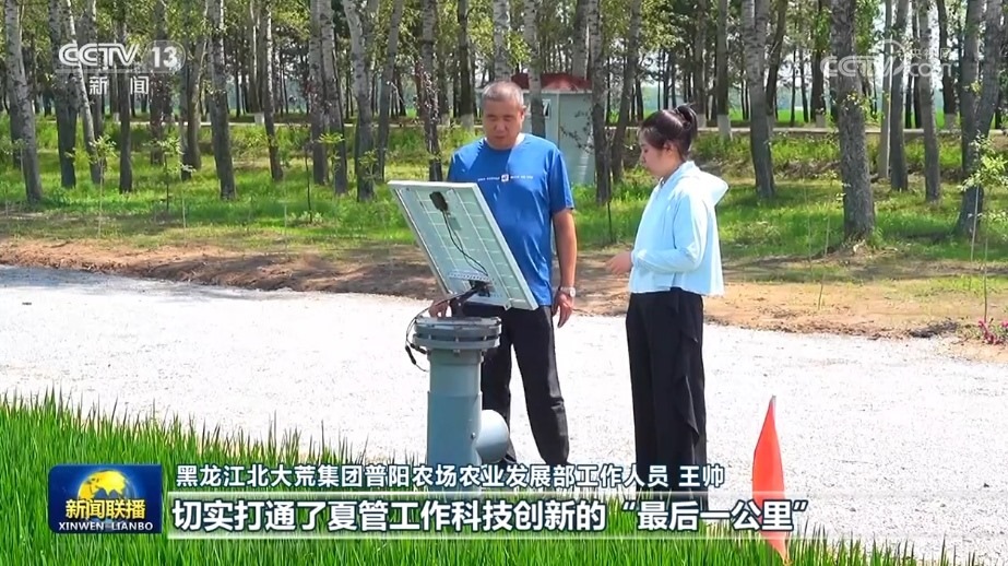 在北大荒普陽農(nóng)場第四管理區(qū)的水稻種植地塊,一套集災(zāi)情氣象、土壤墑情、病蟲害和苗情長勢監(jiān)測于一體的農(nóng)情監(jiān)測設(shè)備,正在24小時不間斷地對水稻生長進(jìn)行全面監(jiān)控。
