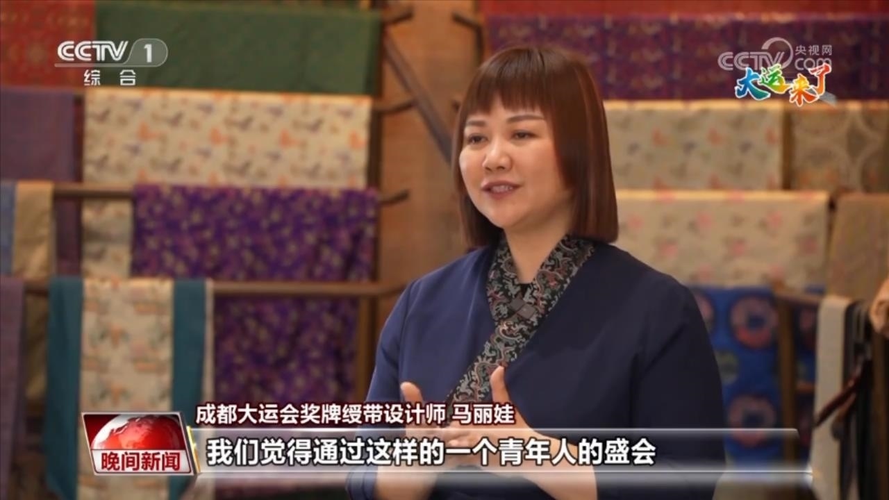 成都大運會獎牌綬帶設(shè)計師 馬麗娃:這個體育賽事其實是一個橋梁,通過這樣一個青年人的盛會,把我們這樣一個優(yōu)秀傳統(tǒng)文化,用一個肉眼可見的形式把它傳遞出去,我覺得這是非常棒的一個形式。