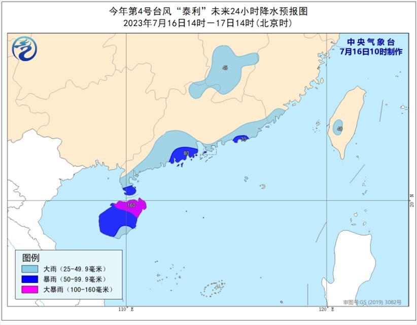 降水預(yù)報(bào):7月16日14時(shí)至17日14時(shí),廣東南部和北部、海南島、福建東南部、江西中部和南部、臺(tái)灣島南部等地的部分地區(qū)有中到大雨,其中海南島、雷州半島南部、廣東南部沿海等地局地有暴雨或大暴雨(100-160毫米)。