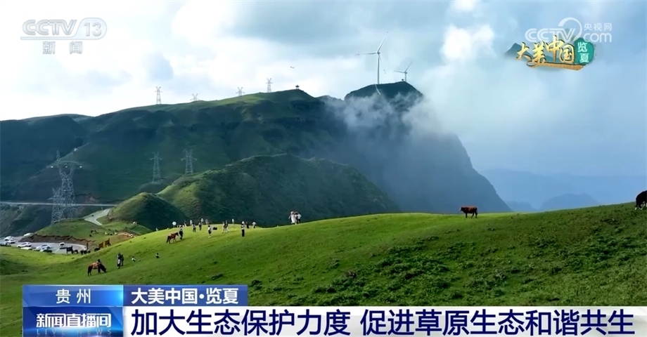 跟隨鏡頭,我們來(lái)到貴州六盤水盤州市的烏蒙大草原。眼下,正值盛夏的烏蒙大草原水草豐茂、碧綠如茵、牛羊成群,從空中俯瞰,縹緲的云霧將草原裝扮得十分夢(mèng)幻。烏蒙大草原最高海拔2857米。因?yàn)榈靥幐吆0蔚貐^(qū),這里的氣候適宜,吸引了許多游客來(lái)到這里避暑旅游。近年來(lái),當(dāng)?shù)丶哟髮?duì)村民和游客的宣傳引導(dǎo)力度,并采取措施限制過度放牧,嚴(yán)厲打擊采挖野生高原矮杜鵑和駕車碾壓草地等行為,保護(hù)草原生態(tài)平衡,維護(hù)生物多樣性,讓烏蒙大草原生態(tài)持續(xù)向好,實(shí)現(xiàn)人與自然和諧共生。