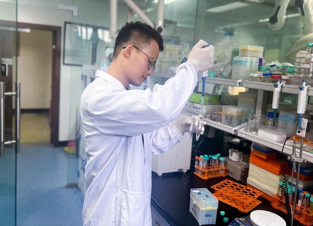 7月20日,四川大學(xué)助理研究員張勃慶在四川大學(xué)國(guó)家生物醫(yī)學(xué)材料工程技術(shù)研究中心的3D生物打印實(shí)驗(yàn)室工作。新華社記者 吳曉穎 攝