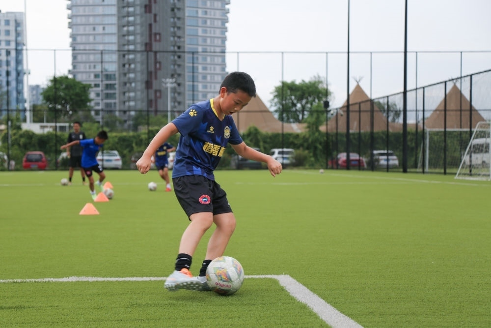 7月21日,在四川天府新區(qū)CDT運(yùn)動(dòng)公園內(nèi),小朋友參加暑期少兒足球訓(xùn)練。新華社記者 楊進(jìn) 攝