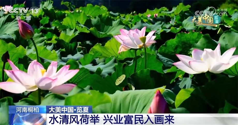 盛夏時(shí)節(jié),河南桐柏縣的兩萬余畝荷田迎來了一年中最美的季節(jié)。從空中俯瞰,藍(lán)天白云之下,青翠的稻田與荷田相映成趣,沿著彎曲的河流交錯分布,青山依依、碧水潺潺、煙波浩渺、荷葉田田,美不勝收。一株株荷花裊娜地開著,以粉紅色為主,或鵝黃或潔白,一幅絕美的鄉(xiāng)村生態(tài)畫卷徐徐展開。據(jù)了解,目前桐柏荷花主要有藕蓮、花蓮等多個品種類群。當(dāng)?shù)卣e極探索農(nóng)旅融合發(fā)展模式,在開展觀光旅游度假的同時(shí),蓮產(chǎn)業(yè)已成為群眾增收的新途徑。