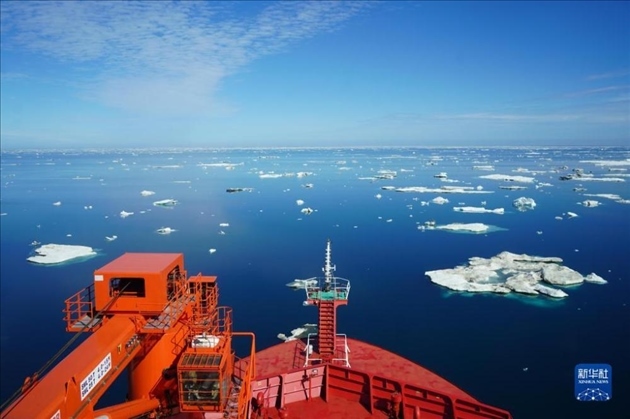 中國第13次北冰洋科學(xué)考察隊穿越北極圈。