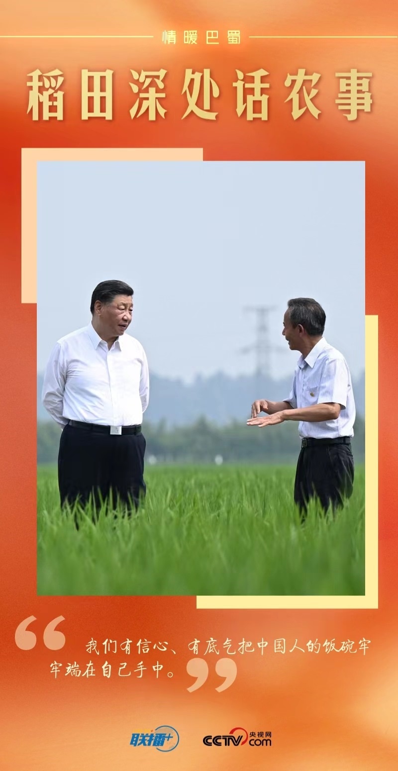 遠眺廣袤田野,總書記思慮深遠:“民以食為天。推進農業(yè)現(xiàn)代化,既要靠我們中國的農業(yè)專家,也要靠我們中國的農民,我們有信心、有底氣實現(xiàn)糧食安全的目標。四川要把農業(yè)搞好,把糧食生產抓好?!?/p>