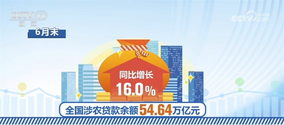 上半年,涉農貸款余額也保持較快增長。6月末,全國涉農貸款余額54.64萬億元,同比增長16.0%;其中普惠型涉農貸款余額12萬億元,同比增長21.03%,超過各項貸款平均增速10.3個百分點。