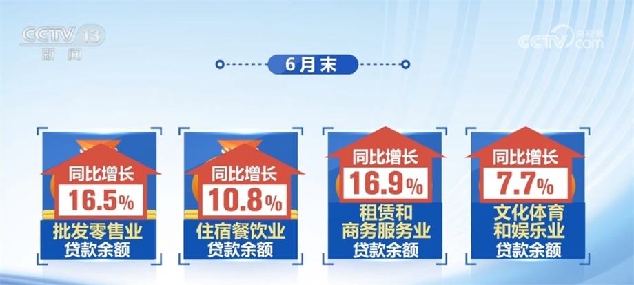 數(shù)據顯示,6月末,批發(fā)零售業(yè)、住宿餐飲業(yè)、租賃和商務服務業(yè)、文化體育和娛樂業(yè)貸款余額同比分別增長16.5%、10.8%、16.9%、7.7%,信用卡、汽車和其他綜合消費貸款比年初增加7100多億元,有力支持了相關領域消費恢復發(fā)展。