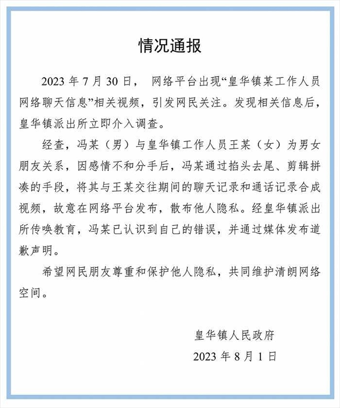 ·四川一公職人員被曝涉不雅聊天,官方通報(bào):視頻系男子分手后剪輯合成。