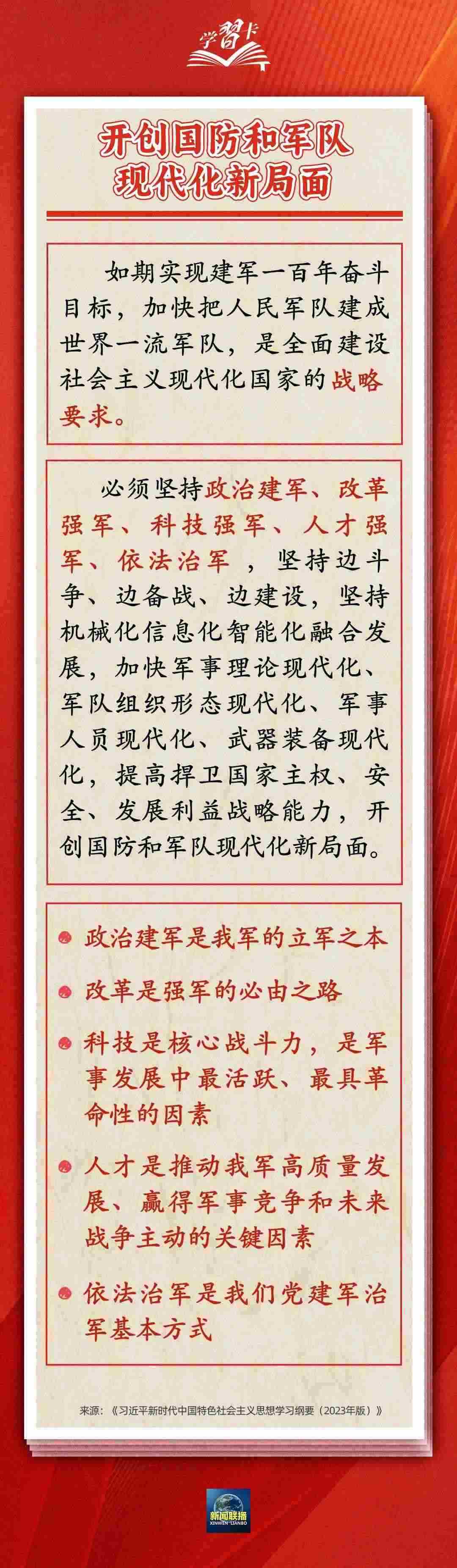 10年來(lái),面對(duì)國(guó)家安全環(huán)境的深刻變化和強(qiáng)國(guó)強(qiáng)軍的時(shí)代要求,我們黨深入貫徹新時(shí)代黨的強(qiáng)軍思想,堅(jiān)定不移走中國(guó)特色強(qiáng)軍之路。今天是“八一”建軍節(jié),如何加快國(guó)防和軍隊(duì)現(xiàn)代化,實(shí)現(xiàn)黨在新時(shí)代的強(qiáng)軍目標(biāo)?一起學(xué)習(xí)↓