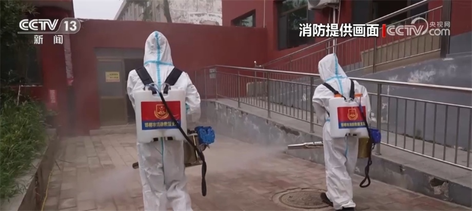 消防員在多個(gè)小區(qū)、老年公寓等持續(xù)開(kāi)展清淤排水消殺工作