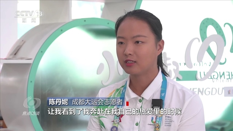 成都大運會志愿者陳丹妮:“我一定要回來,一定要把這件事情做完,而且把這件事情做好。我覺得成都大運會是我跟成都很深的情感上,包括精神上的一個聯(lián)結(jié),它已經(jīng)成為我青春記憶中非常重要的一個環(huán)節(jié),所以我完全沒有想過我有一天要放棄它。”