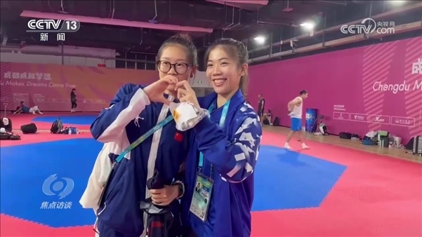 成都大運會,是青春的盛會,也是一次友誼的盛會。來自世界各國的大學(xué)生們,一起競技,一起生活。他們交流著彼此的運動技巧,同時也交流著彼此的文化和觀點。正在中國地質(zhì)大學(xué)就讀的跆拳道運動員羅妙溢,在成都大運會中遇到了自己的偶像——東京奧運會跆拳道女子49公斤級冠軍、泰國選手班妮巴。在自己不比賽的時候,羅妙溢會專門來給班妮巴加油。