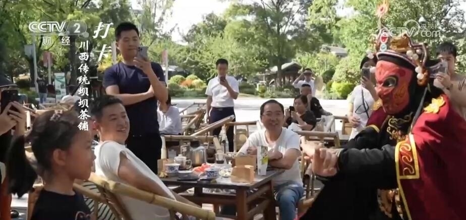 成都臺(tái)記者 劉然然:打卡中國(guó)消費(fèi)新地標(biāo),今天我來(lái)到了位于四川成都高新區(qū)的鐵像寺水街。今天第一項(xiàng),我們來(lái)打卡鐵像寺水街的川味元素。在我身后這個(gè)古香古色的戲臺(tái),不定期就會(huì)有川劇、變臉、茶藝等表演,花上十幾塊錢泡碗茶,就能在這里享受一天的安逸生活。