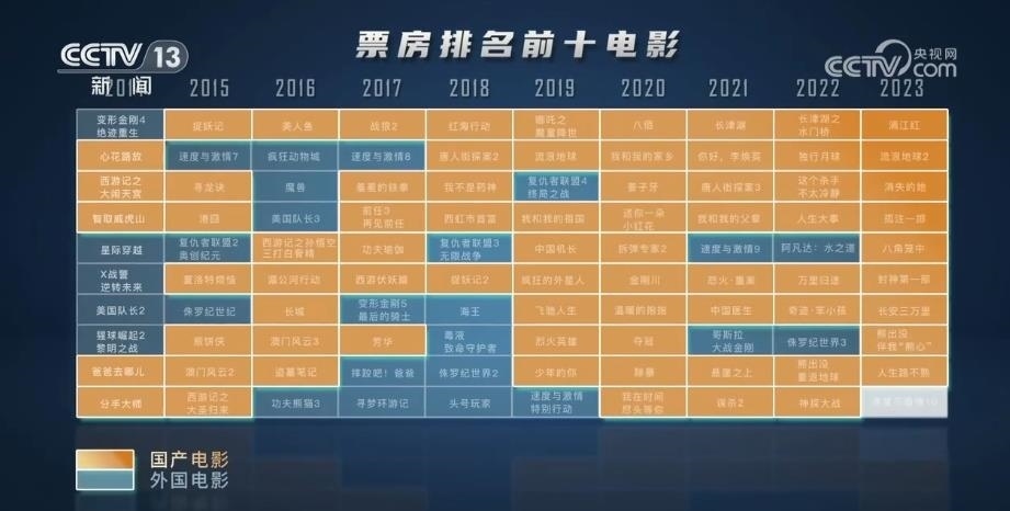 央視網(wǎng)消息:國(guó)家電影局最新發(fā)布統(tǒng)計(jì)數(shù)據(jù)顯示,2023年暑期檔電影票房已達(dá)178億元,超過(guò)2019年暑期檔總票房,創(chuàng)歷史新高。是什么點(diǎn)燃了觀(guān)眾對(duì)電影的熱情? 通過(guò)對(duì)近10年票房前10名的電影片尾字幕提取,用數(shù)據(jù)洞察國(guó)產(chǎn)電影的發(fā)展。