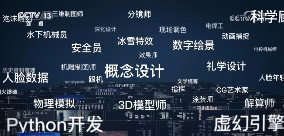 從30多萬(wàn)字的文本中,AI算法識(shí)別出了300多個(gè)電影產(chǎn)業(yè)工種,一條隱藏在幕后的國(guó)產(chǎn)電影產(chǎn)業(yè)鏈在眼前展開(kāi)。這是一個(gè)電影產(chǎn)業(yè)鏈越分越細(xì)、工種越增越多的過(guò)程。20多個(gè)新的工種在這10年間誕生,動(dòng)作捕捉、虛擬拍攝、數(shù)控編程、3D打印等,其中,七成以上的新增工種跟數(shù)字化技術(shù)的進(jìn)步有關(guān)。