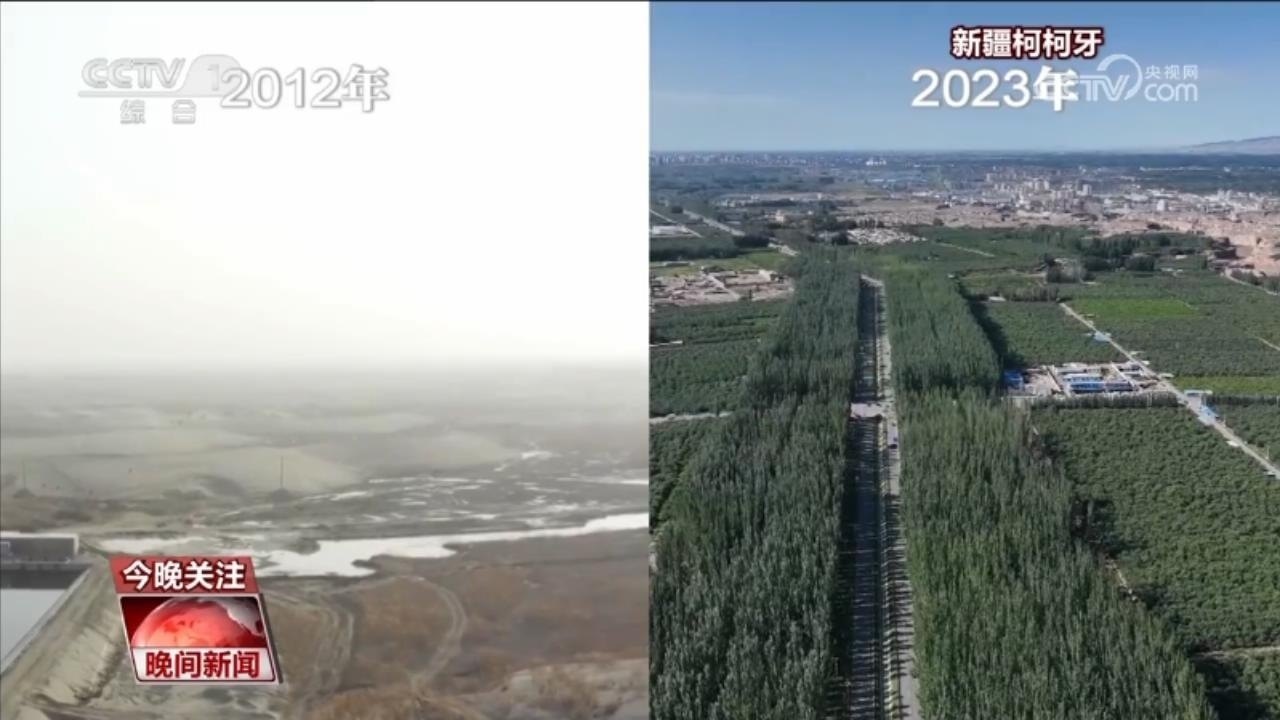 新疆阿克蘇地區(qū)的柯柯牙曾經(jīng)是南疆風(fēng)沙策源地之一。30年來,面對柯柯牙缺水和土壤鹽堿含量高的情況,當(dāng)?shù)叵到y(tǒng)推進山水林田湖草沙一體化保護和系統(tǒng)治理,柯柯牙綠化工程造林共計120.26萬畝,累計栽植樹木1400萬株,荒漠變?yōu)榱趾#罱K在貧瘠的戈壁荒漠中,造就了一道“綠色長城”。