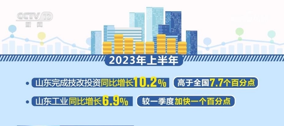 2023年上半年,山東完成技改投資同比增長(zhǎng)10.2%,高于全國(guó)7.7個(gè)百分點(diǎn),在此拉動(dòng)下,全省工業(yè)同比增長(zhǎng)6.9%,較一季度加快一個(gè)百分點(diǎn)。