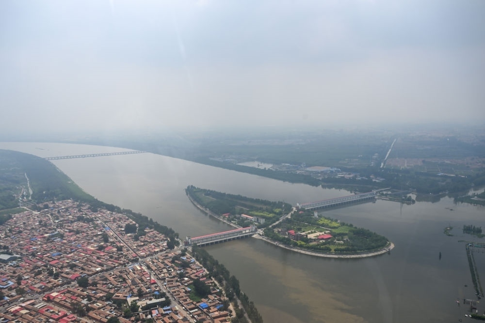這是從直升機(jī)上拍攝的獨(dú)流減河進(jìn)洪閘,大清河與子牙河在此匯入獨(dú)流減河(8月8日攝)。新華每日電訊記者孫凡越攝