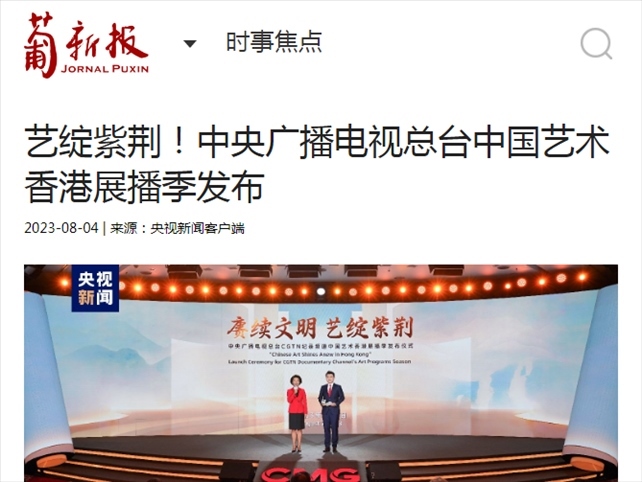 近期,中央廣播電視總臺CGTN紀錄頻道“賡續(xù)文明 藝綻紫荊”中國藝術(shù)香港展播季在京港兩地共同發(fā)布。30余部展現(xiàn)中華優(yōu)秀傳統(tǒng)文化的總臺紀錄片、專題片正陸續(xù)通過CGTN紀錄頻道在香港播出。