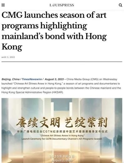 總臺CGTN在官網(wǎng)發(fā)布的《中國藝術(shù)香港展播季 讓觀眾零距離觸摸源遠流長的中華文明》稿件被來自美國、英國、法國、澳大利亞、韓國、加拿大、意大利等20個國家和地區(qū)的799家海外主流網(wǎng)絡(luò)媒體轉(zhuǎn)載。美國《國際日報》《歐洲僑報》《葡新報》《非洲時報》《委國僑報》、新西蘭格局傳媒網(wǎng)站、歐僑網(wǎng)和日本華商網(wǎng)等海外華文媒體也以多種形式刊載轉(zhuǎn)發(fā)了相關(guān)報道。