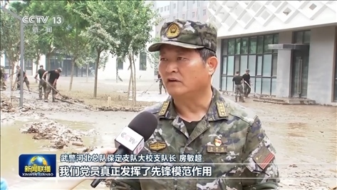 武警河北總隊保定支隊大校支隊長 房敏超:每一個任務(wù)區(qū)域,第一個下水的肯定是黨員,第一個背著老人上來的也是黨員,在這次搶險救災(zāi)行動當中,我們黨員真正發(fā)揮了先鋒模范作用,用實際行動踐行絕對忠誠。