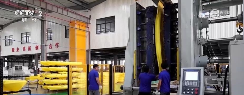 在浙江慈溪的一家皮劃艇企業(yè),記者看到,一條皮劃艇的吹塑生產線正在運轉。和傳統的滾塑不同,吹塑工藝成型更快、效率更高。6分鐘左右,一條吹塑皮劃艇可基本成型。