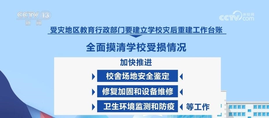 教育部強(qiáng)調(diào),要慎終如始做好災(zāi)后恢復(fù)重建各項(xiàng)工作,穩(wěn)慎做好受災(zāi)師生安置慰問、補(bǔ)償救助等工作。受災(zāi)地區(qū)教育行政部門要建立學(xué)校災(zāi)后重建工作臺賬,全面摸清學(xué)校受損情況,加快推進(jìn)校舍場地安全鑒定、修復(fù)加固和設(shè)備維修、衛(wèi)生環(huán)境監(jiān)測和防疫等工作。確實(shí)在開學(xué)前不能完成災(zāi)后重建的,要立足實(shí)際采取臨時(shí)轉(zhuǎn)移就學(xué)等舉措,全力保障正常開學(xué)。各地各校要一體推進(jìn)防汛救災(zāi)和校園安全治理,健全校園安全常規(guī)檢查機(jī)制,持續(xù)深入排查整治風(fēng)險(xiǎn)隱患,有效防范原發(fā)、誘發(fā)性自然災(zāi)害和次生安全風(fēng)險(xiǎn)。